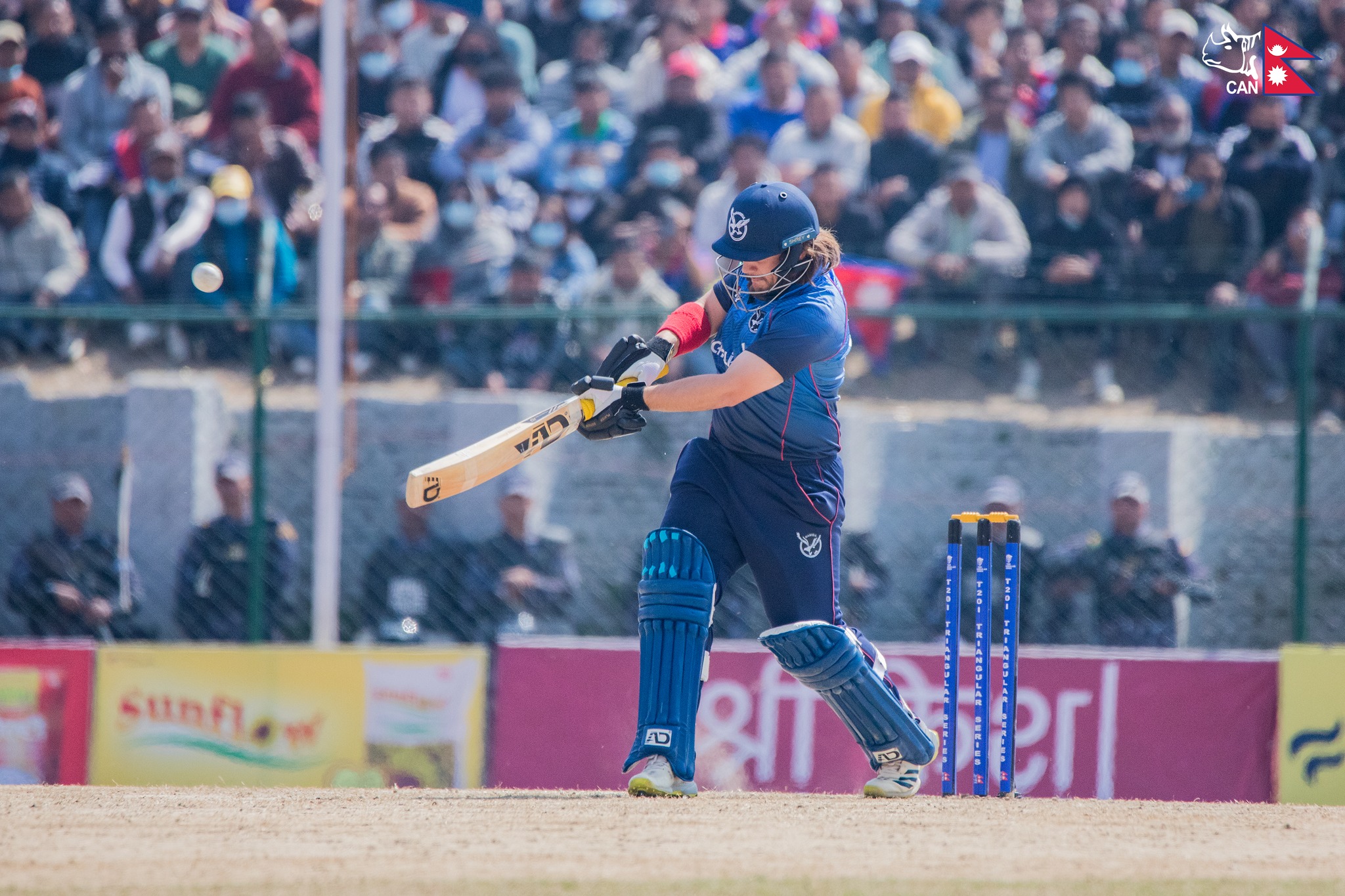 नेपालका कप्तान रोहित पौडेलले दुई विकेट लिँदा करण केसी र अविनाश बोहराले समान एक–एक विकेट लिए ।