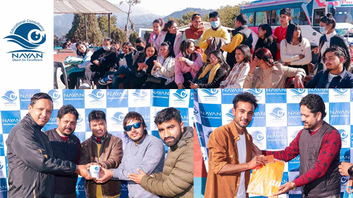 नयन एजुकेशनल कन्सल्टेन्सी बाट बिभिन्न शैक्षिक गन्तव्यमा जादै गरेका बिद्यार्थीहरुको बिचमा साक्षात्कार होस् , भन्ने उद्देश्यले आयोजित उक्त वनभोज कार्यक्रममा संस्थाका डाइरेक्टर श्री कृष्ण लुइँटेलको अध्यक्षतामा बिभिन्न मनोरञ्जनात्मक तथा बुद्धीबर्धक खेलहरू संचालन गरिएको थियो।