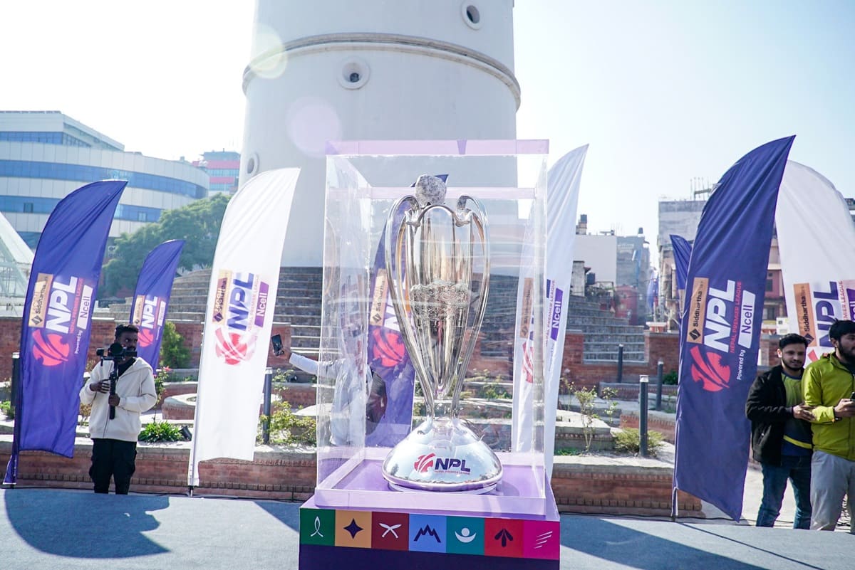 काठमाडौँ, १० मंसिर – आज काठमाडौँको धरहरा परिसरमा नेपाल प्रिमियर लिग (एनपीएल)को ट्रफीको अनावरण गरिएको छ। उक्त समारोहमा प्रधानमन्त्री केपी शर्मा ओलीले एनपीएलको नयाँ ट्रफी सार्वजनिक गरे।