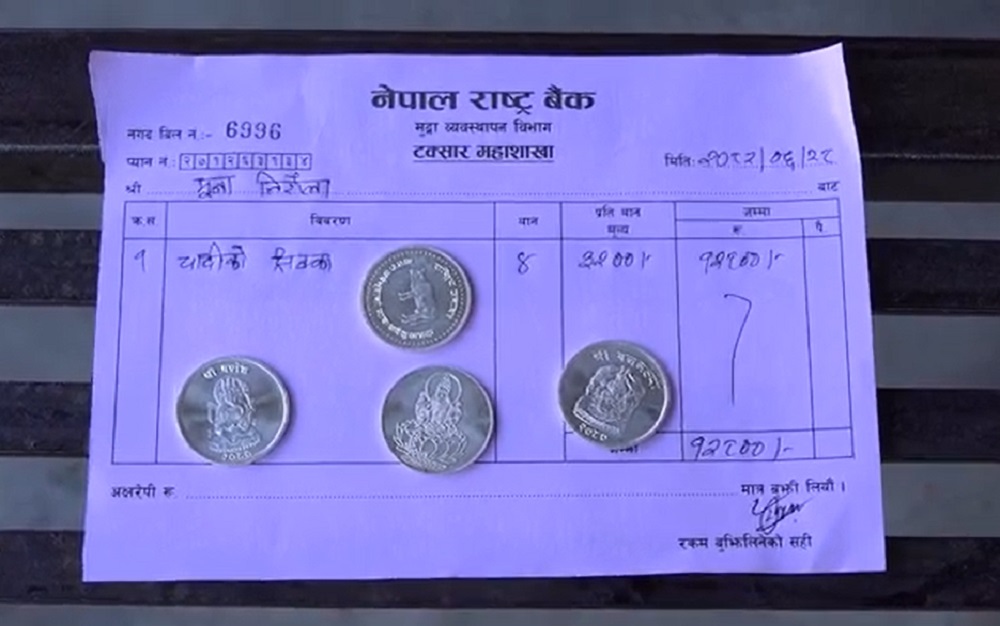 राष्ट्र बैंकको टक्सार महाशाखाले असोज २६ गतेदेखि चाँदीको मेडालियन बिक्री वितरणका लागि भने मूल्य सार्वजनिक गरेको थियो । महाशाखाका अनुसार लक्ष्मी मेडालियन (१०) ग्राम ३ हजार दुई सय रुपैयाँ, गणेश मेडालियन (१०) ग्राम, गजलक्ष्मी (१०) ग्राम र गाई मेडालियन (१०) ग्राम ३ हजार दुई सय रुपैयाँ कै दरले वितरण गरिने भएको छ । महाखाशाका अनुसार प्रतिव्यक्ति १ मात्रै वितरण गरिने छ ।