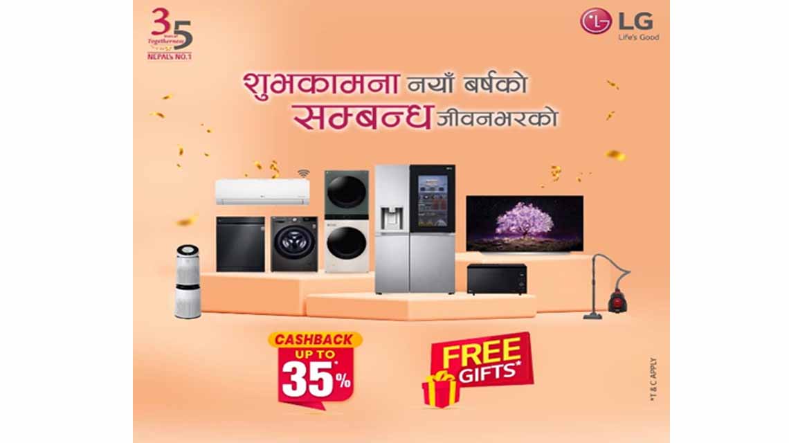 एलजीद्धारा ३५% सम्मक्यास ब्याक र विभिन्न पक्का उपहारहरुको नयाँ बर्ष अभियान जारी