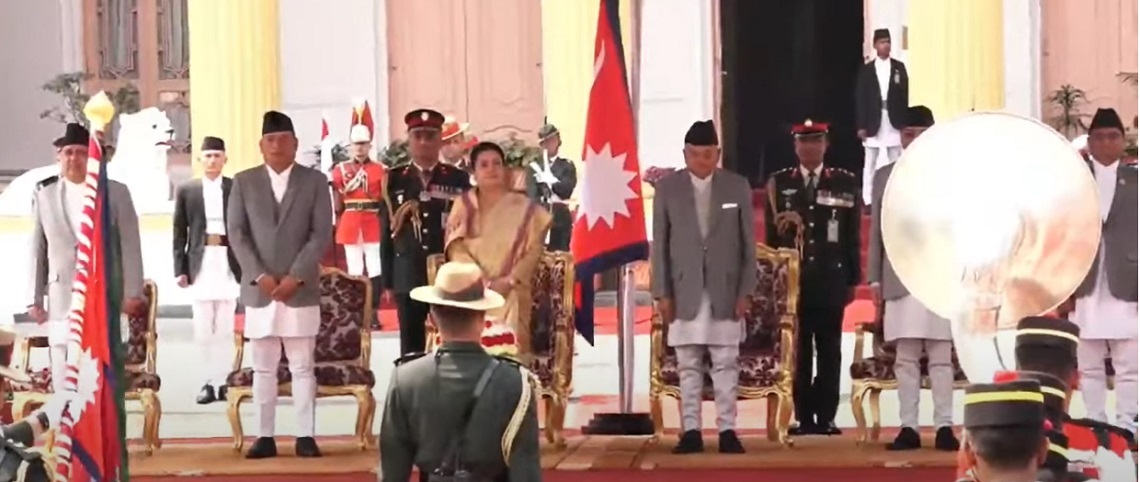 नेपाली सेनाको टुकडीले राष्ट्रपति पौडेललाई २१ तोपको सलामी पनि अर्पण गरेको छ ।सपथ ग्रहणसँगै रामचन्द्र पौडेल मुलुकको तेस्रो राष्ट्रपति बनेका छन् ।