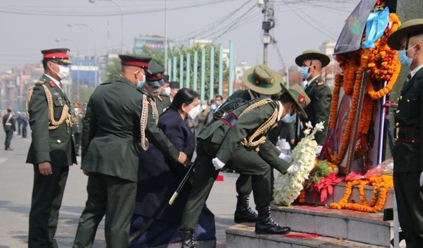 • काठमाडौं । राष्ट्रपति विद्यादेवी भण्डारीले पृथ्वीजयन्तीको अवसरमा मंगलबार पृथ्वीनारायण शाहको शालिकमा माल्यार्पण गरेकी छन् ।