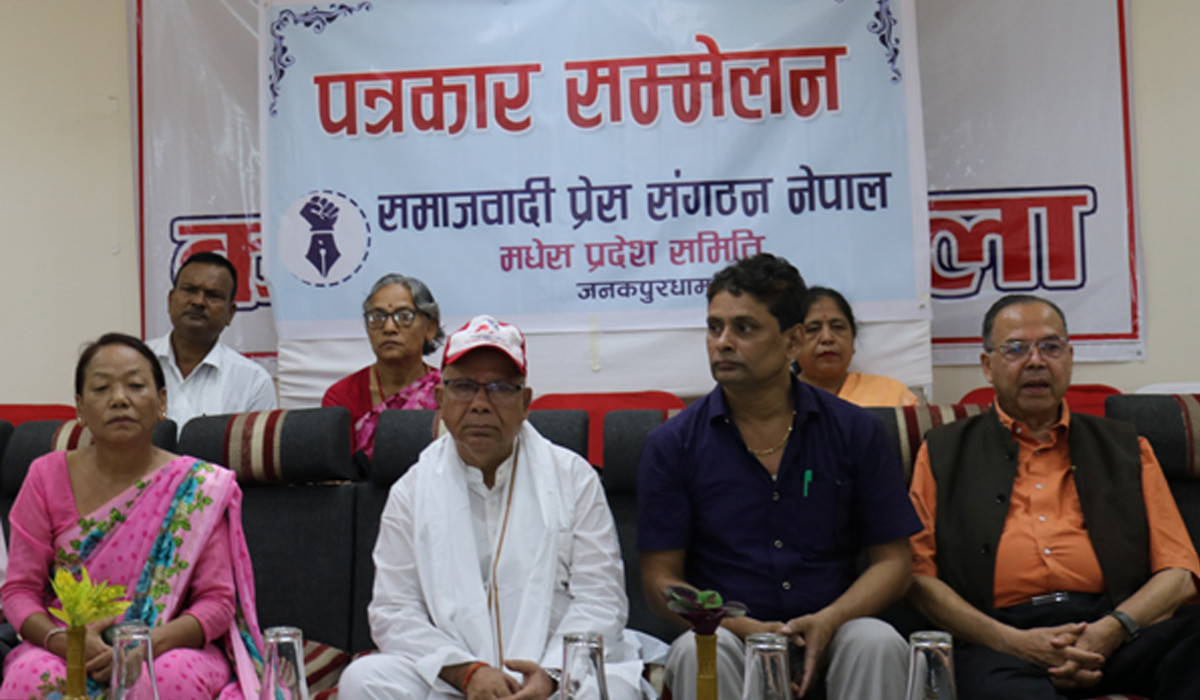 समाजवादी प्रेस सङ्गठन मधेस प्रदेशले आज जनकपुरमा आयोजना गरेको पत्रकार सम्मेलनमा अध्यक्ष नेपालले अशान्ति मच्चाउने मनसायले देशका विभिन्न भू–भागमा सामाजिक सद्भाव प्रतिकूलका क्रियाकलाप भइरहेकाप्रति चिन्ता व्यक्त गर्दै त्यस्ता संविधानविरोधी काममा नलाग्न सबैलाई आग्रह गरे।