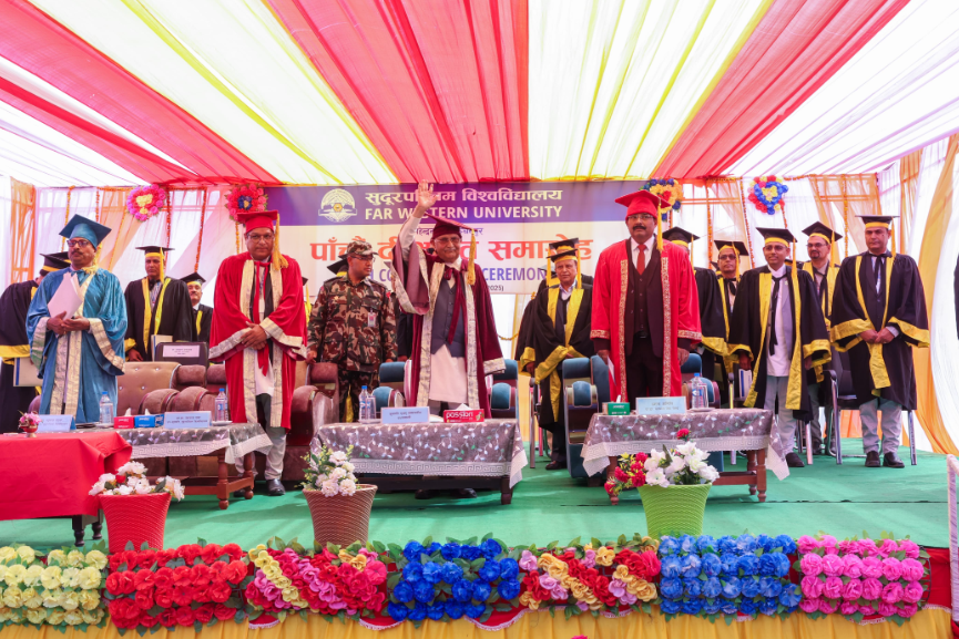 • काठमाडौँ , २५ फागुन । प्रधानमन्त्री केपी शर्मा ओलीको उपस्थितिमा आइतबार सुदूरपश्चिम विश्वविद्यालयको पाँचौँ दीक्षान्त समारोह सम्पन्न भएको छ। समारोहमा ३७२ विद्यार्थीहरूले स्नातक र स्नातकोत्तर उपाधि प्राप्त गरेका छन्। यी विद्यार्थीहरू विश्वविद्यालयका मानविकी र समाजशास्त्र, शिक्षा, व्यवस्थापन, इन्जिनियरिङ र कृषि विज्ञानका विभिन्न कार्यक्रमहरूमा शिक्षित भएका हुन्।