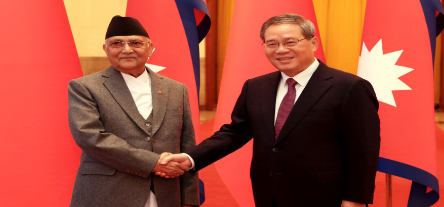काठमाडौँ ,मङ्सिर १८ । चीनको औपचारिक भ्रमणमा रहेका प्रधानमन्त्री केपी शर्मा ओलीलाई चिनियाँ समकक्षी ली छ्याङले आज ग्रेट हल अफ पिपलमा स्वागत गरेका छन्। प्रधानमन्त्री ओलीको सम्मानमा चिनियाँ जनमुक्ति सेनाले गार्ड अफ अनर प्रस्तुत गर्यो। यस अवसरमा अन्य चिनियाँ नेताहरू पनि सहभागी भएका थिए। प्रधानमन्त्री ओलीले समकक्षी ली छ्याङलाई आफ्नो भ्रमण दलका सदस्यलाई परिचय गराउनुभयो, जबकि चिनियाँ प्रधानमन्त्रीले पनि आफ्ना नेताहरूको परिचय गराए।