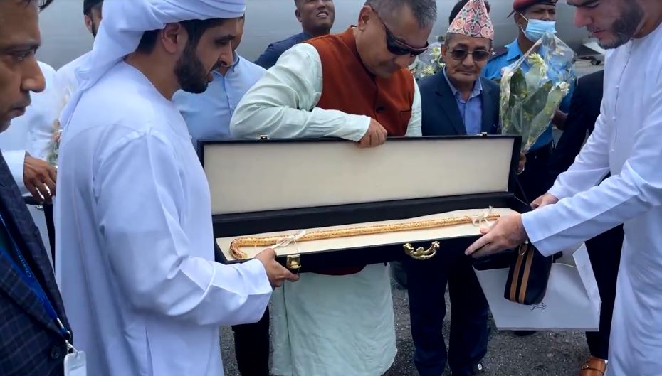 काठमाडौं । संयुक्त अरब इमिरेट्स (यूएई)का राजकुमार शेख मोहम्मद माक्तुम जुमा ला माक्तुमले मेडिकल व्यवसायी तथा एमाले केन्द्रीय सदस्य दुर्गा प्रसाईंलाई उपहार दिएको ‘सुनको लौरो’ त्यसबारेको रहस्यको खोजी हुँदैछ