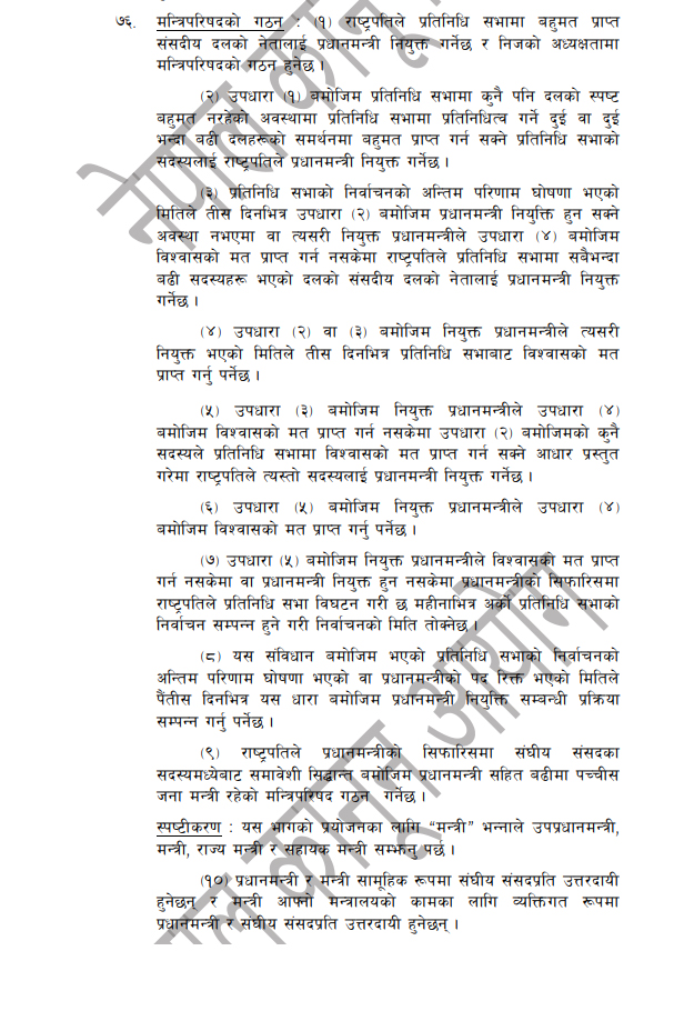राष्ट्रपतिले नयाँ सरकार गठनका लागि आह्वान गरिरहँदा हाम्रो संवैधानिक व्यवस्था भने यस्तो रहेको छ ।