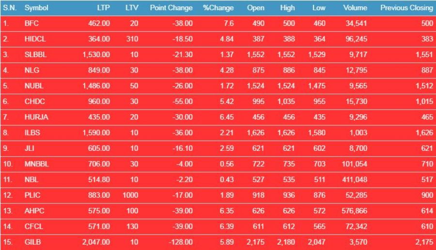 नेप्सेका अनुसार आज आइसीएफसी फाइनान्सका लगानीकर्ताले सर्वाधिक गुमाएका छन् । यी कम्पनीको शेयरमूल्य आज ८ प्रतिशत भन्दा बढीले घटेको छ । त्यस्तै, कारोबारको आधारमा आज सबैभन्दा बढी अरुण भ्याली हाइड्रोपावरको भएको छ । यस कम्पनीको आज ३३ करोड भन्दा बढीको कारोबार भएको छ ।