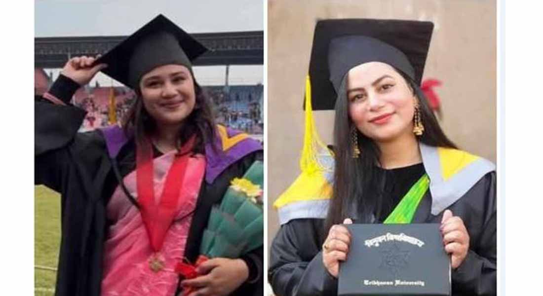 • काठमाडौं । काठमाडौंकी २८ वर्षीया रेविका भण्डारी र उनकी २७ वर्षीया बहिनी रिकिता भण्डारी स्वर्ण पदक विजेता (गोल्ड मेडलिस्ट) बनेकी छन्। रेविका व्यवस्थापन क्षेत्रकी विद्यार्थी हुन् र उनले एमबिएस (मास्टर अफ बिजनेस एडमिनिस्ट्रेशन) मा ३.९० सिजिपिए (ग्रेड प्वाइन्ट एभरेज) ल्याएकी छन्।