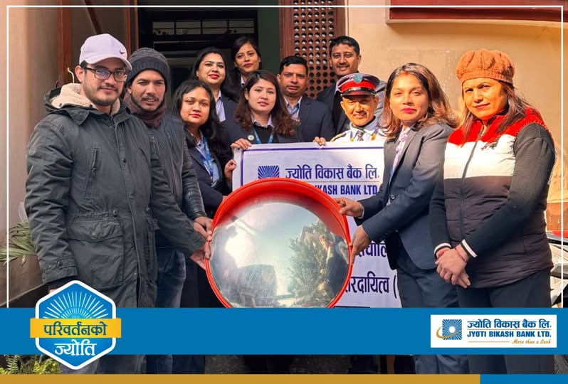 काठमाण्डौ। ज्योति विकास बैंकले फुटुङ्ग सरोकार मञ्चसँगको सहकार्यमा फुटुङ्ग क्षेत्रका प्रमुख चोकहरूमा १२ वटा सडक सुरक्षा कन्भेक्स मिरर जडान गरेको छ। यस पहलको उद्देश्य सडक दुर्घटनाको जोखिमलाई कम गर्नु र सार्वजनिक सुरक्षा प्रवर्द्धन गर्नु रहेको छ।