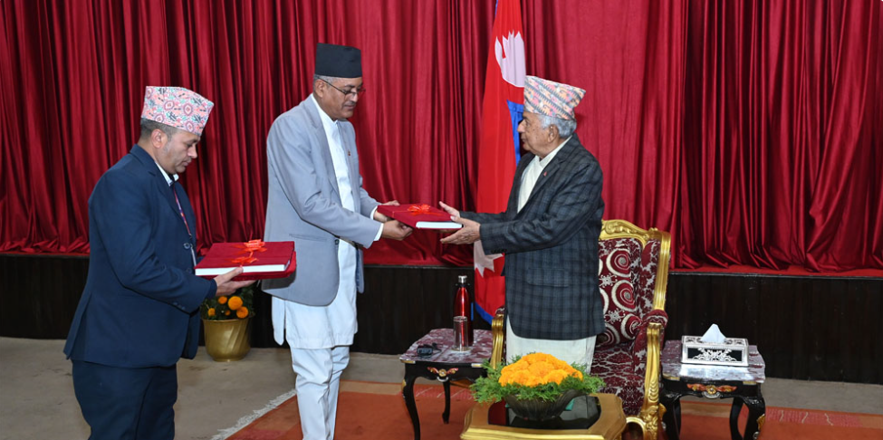 काठमाडौँ , २८ पुस । राष्ट्रपति रामचन्द्र पौडेलसमक्ष महान्यायाधिवक्ताको कार्यालयको आर्थिक वर्ष २०८०(०८१ को प्रतिवेदन आइतबार पेस गरिएको छ। राष्ट्रपति भवन शीतलनिवासमा आयोजित कार्यक्रममा महान्यायाधिवक्ता रमेश बडालले प्रतिवेदन प्रस्तुत गरे।