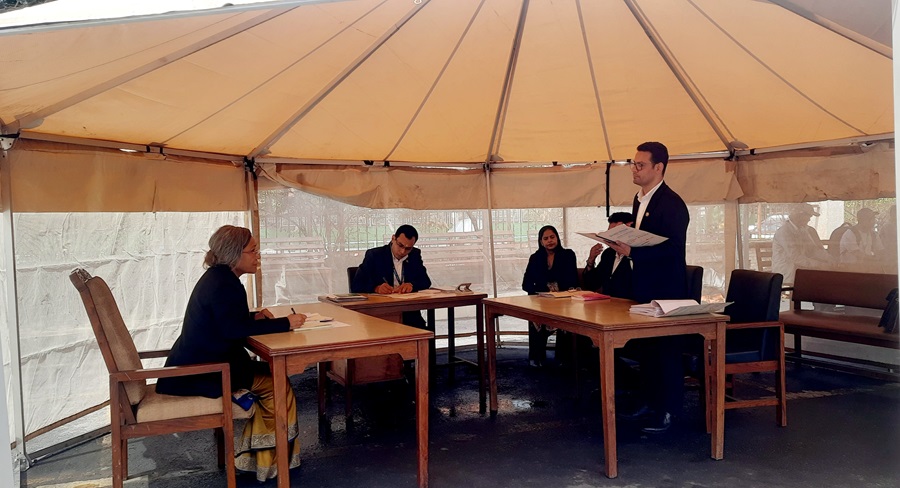 काठमाडौँ । गत भदौ २४ गतेको आगजनीले सर्वोच्च अदालतको भवन पूर्णरूपमा क्षतिग्रस्त भएपछि आजदेखि पालमुनि नै इजलास सञ्चालन सुरु भएको छ। प्रवेशद्वारदेखि नै जलेको भवन, सवारीसाधनको थुप्रो र असरल्ल टेबल–कुर्सी देखिने सर्वोच्चले बाध्यतावश पालमुनि अस्थायी इजलास गठन गरेको हो।