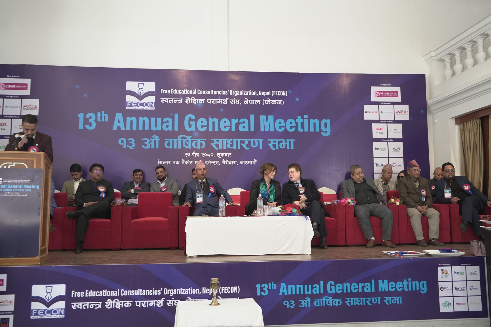 • काठमाडौँ, १ माघ । परामर्श व्यवसायीहरूको छाता संगठन स्वतन्त्र शैक्षिक परामर्श संघ नेपाल (फेकन) को १३ औँ वार्षिक साधारण सभा राजधानीको गैरीधारा स्थित सिल्भर ओक बैक्वेट एन्ड इभेन्ट्समा सम्पन्न भएको छ। परामर्श व्यवसाय क्षेत्रमा छलफल गर्दै उक्त साधारण सभाले मुख्य एजेन्डाका रूपमा नेपाललाई शैक्षिक हब बनाउन पहल गर्ने प्रतिबद्धता गरेको छ।फेकन अध्यक्ष राजु निरौलाको सभापतित्वमा सम्पन्न कार्यक्रममा नेपाल सरकारकी शिक्षा, विज्ञान तथा प्रविधि राज्यमन्त्री प्रमिला कुमारी प्रमुख अतिथिका रूपमा रहेकी थिइन्। कार्यक्रममा विशेष अतिथिका रूपमा नेपालका लागि अस्ट्रेलियन राजदूत फेलिसिटि भल्क, नेपाल सरकारका उपसचिव तथा शैक्षिक परामर्श प्रमाणीकरण शाखा प्रमुख सिमान्त कोइराला, अस्ट्रेलिया स्थित एनएसडब्लु राज्यका पूर्व महावाणिज्य दूत दिपक खड्का, काठमाडौँ विश्वविद्यालयका सह(प्राध्यापक निर्मलमणि अधिकारी, आइडिपी तथा ब्रिटिस काउन्सिलका प्रतिनिधि आदि उपस्थित थिए। त्यस्तै कार्यक्रममा विभिन्न छाता संगठनका प्रतिनिधि, विभिन्न शैक्षिक संस्था तथा साझेदारहरूका प्रतिनिधि तथा अन्य आमन्त्रित व्यक्तिहरू अतिथिका रूपमा रहँदा फेकन सदस्य परामर्श व्यवसायीहरूको बाक्लो उपस्थिति कार्यक्रममा रहेको थियो।