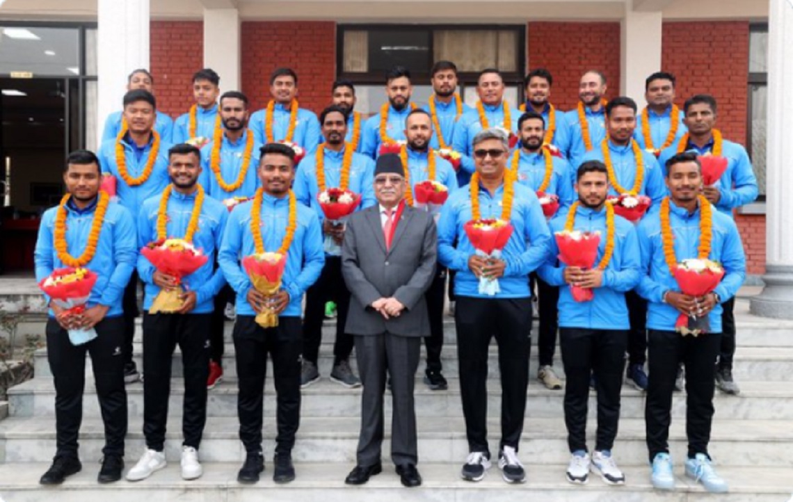 • काठमाडौँ, चैत  ३   । प्रधानमन्त्री पुष्पकमल दाहाल “प्रचण्ड”ले विश्वकप क्रिकेटको क्वालिफायरमा छनोट भएका नेपाली खेलाडीहरूलाई जनही तीन लाख पुरस्कार घोषणाको गरेका छन् ।विजेता खेलाडीहरूलाई शुक्रबार बिहान सरकारी निवास बालुवाटारमा सम्मान गर्दै प्रधानमन्त्री पुष्पकमल दाहालले उक्त पुरस्कारको घोषणा गरेका  हुन् ।