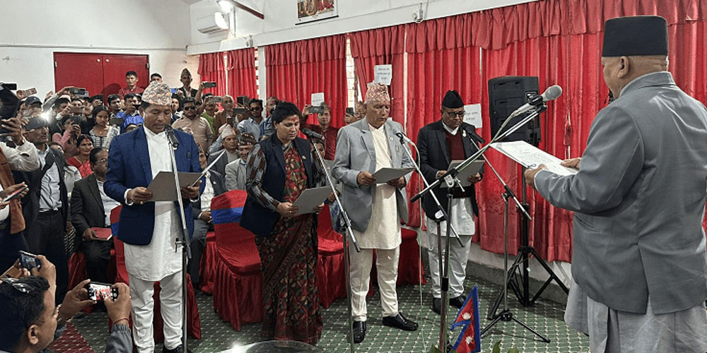 काठमाडौँ, ७ बैशाख । कर्णाली प्रदेश सरकारका नवनियुक्त चार जना मन्त्रीले पद तथा गोपनीयताको शपथ लिएका छन् ।