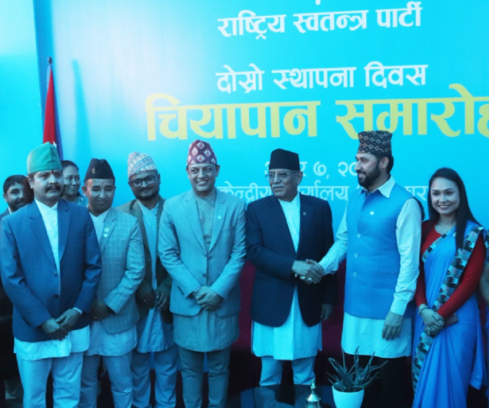 • काठमाडौँ , ७ असार |  आफ्नो दोस्रो स्थापना दिवसको अवसरमा राष्ट्रिय स्वतन्त्र पार्टी ( रास्वपा)ले आयोजना गरेको चियापान कार्यक्रममा प्रधानमन्त्री सहित विभिन्न राजनीतिक दलका शीर्ष नेताहरू सहभागी भएका छन् ।