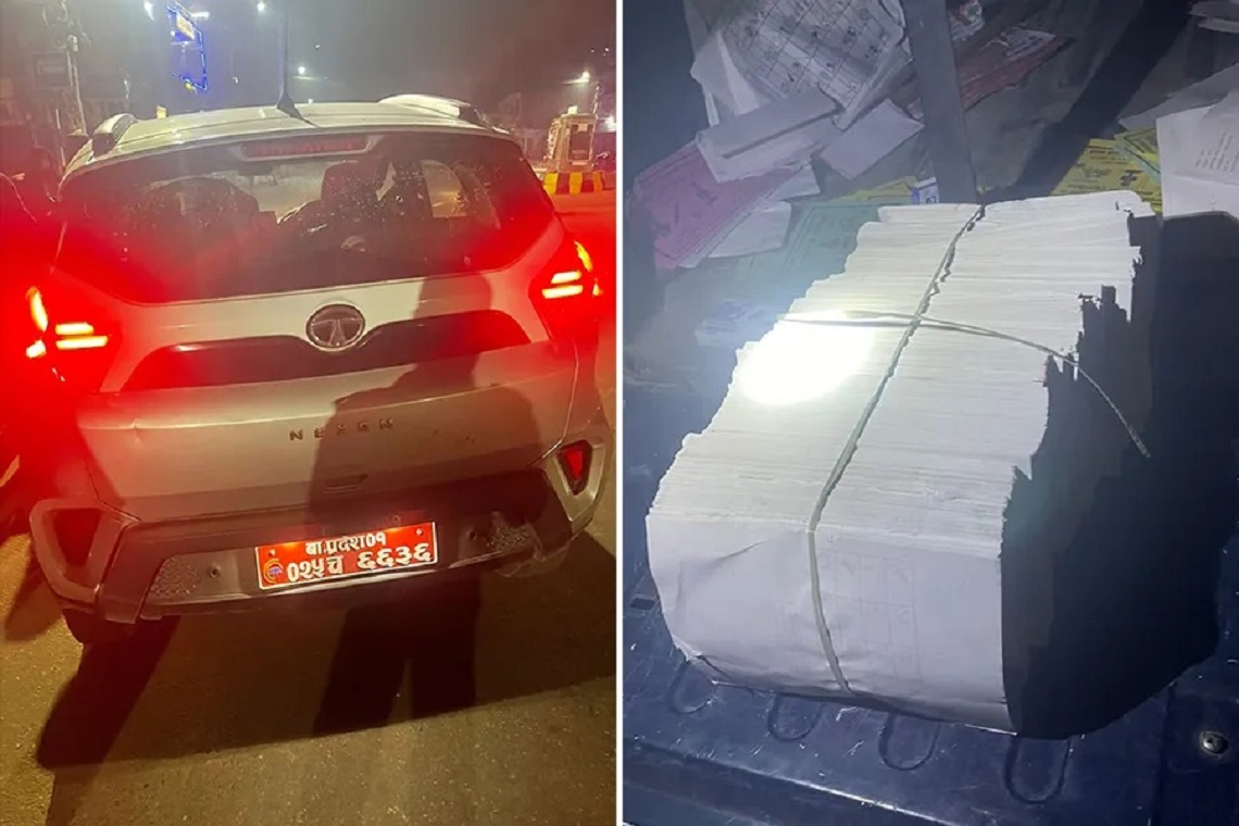 गएराति वीरगञ्जको सीमानाकामा गाडीमा जाँच गर्दा बागमती प्रदेश ०१–०२५ च ६६३६ नम्बरको कारबाट १० हजार थान नक्कली मतपत्र र दुई सय ५० थान स्वस्तिक छाप बरामद गरेको हा े । उनीहरुबाट नगद दुई लाख ५० हजार पनि फेला परेको छ ।