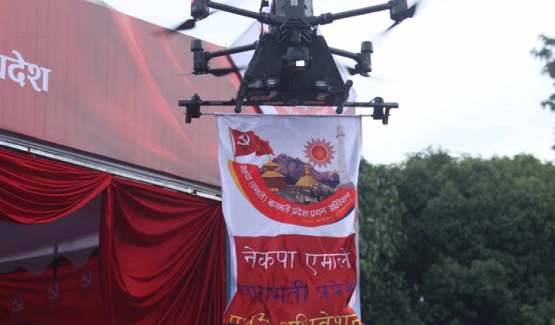 • काठमाडौं, ८ असोज । नेकपा एमालेको बागमती प्रदेश अधिवेशन काठमाडौंमा सुरु भएको छ । ड्रोनबाट ब्यानर उडाएर र रिमोटबाट दियो बालेर कार्यक्रम उद्घाटन गरिएको छ ।