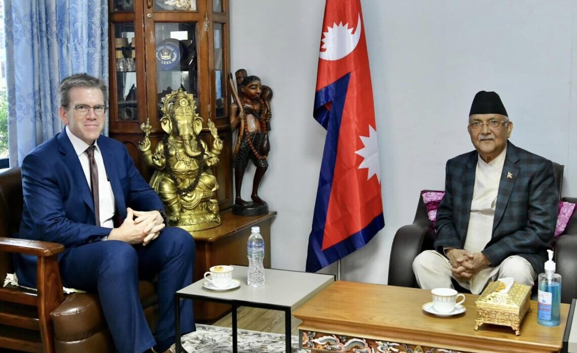 • काठमाडौं । नेकपा (एमाले) का अध्यक्ष केपी शर्मा ओलीसँग नेपालका लागि संयुक्त राज्य अमेरिकाका नवनियुक्त राजदूत डेन आर थम्पसनले  शिष्टाचार भेट गर्नुभएको छ ।
