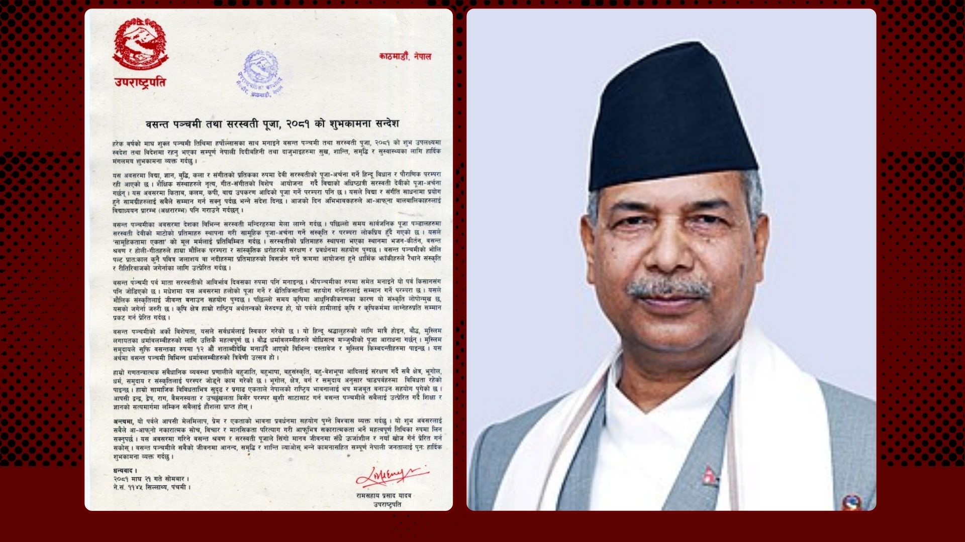 साथै, सरस्वती प्रतिमाहरू स्थापना गरिएका स्थानमा भजन–कीर्तन, वसन्त श्रवण तथा होली गीतहरूले मौलिक परम्परा तथा सांस्कृतिक धरोहर संरक्षणमा टेवा पुग्ने विश्वास उपराष्ट्रपतिले व्यक्त गरेका छन्।