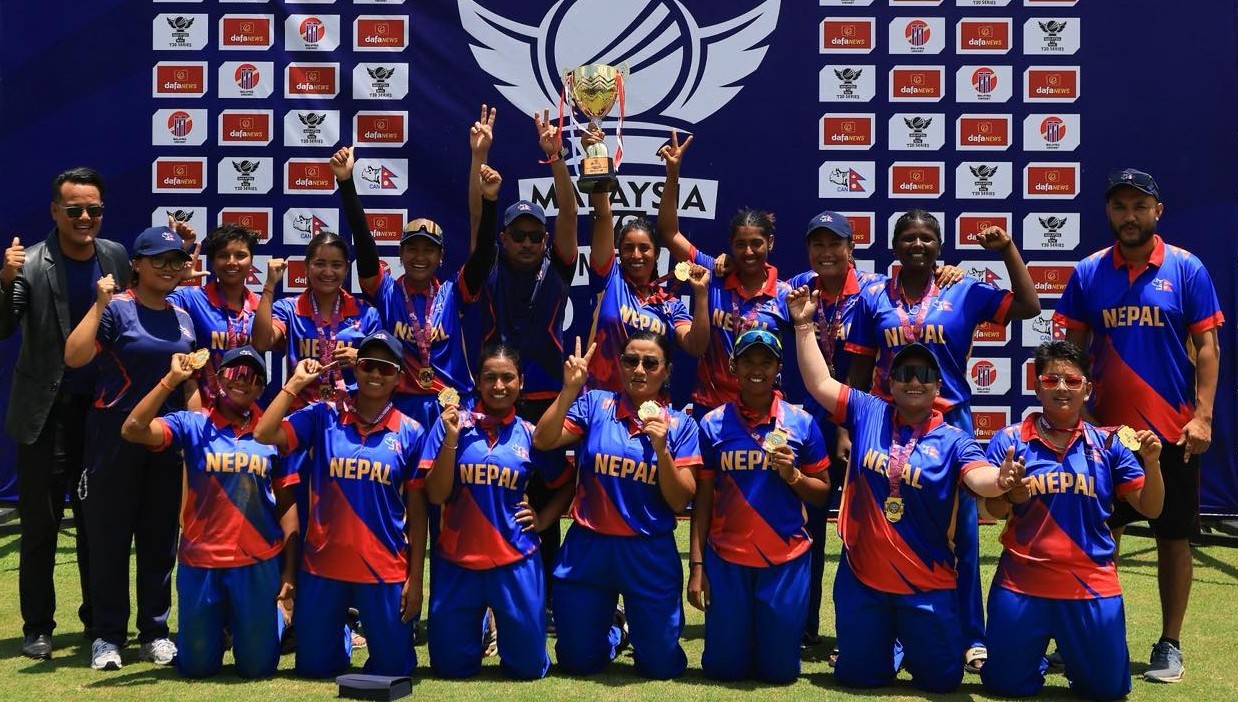 काठमाडौं । नेपाली महिला क्रिकेट टिमले मलेसियाविरुद्धको सिरिज जितेको छ । नेपालले मलेसियाविरुद्धको सिरिजको पाँचौं खेल ५ विकेटले जितेर सिरिज ३(२ ले जितेको हो । मलेसियालाई ५ विकेटले पराजय गर्दै नेपालले सिरिज हात पारेको हो। बुधबार मलेसियाले दिएको १०४ रनको लक्ष्य पछाएको नेपालले १८ ओभरमा लक्ष्य पूरा गर्यो।
